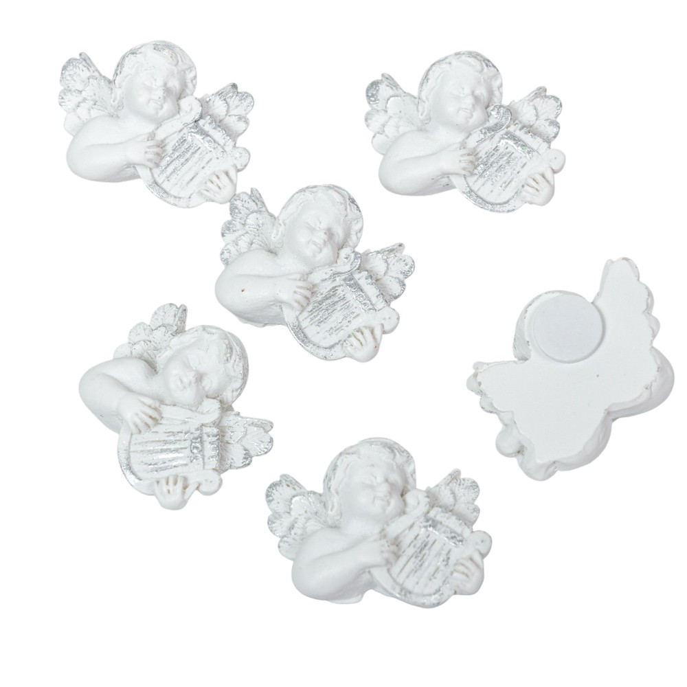 Angyal hárfával poly ezüst 3,2cm 6db-os