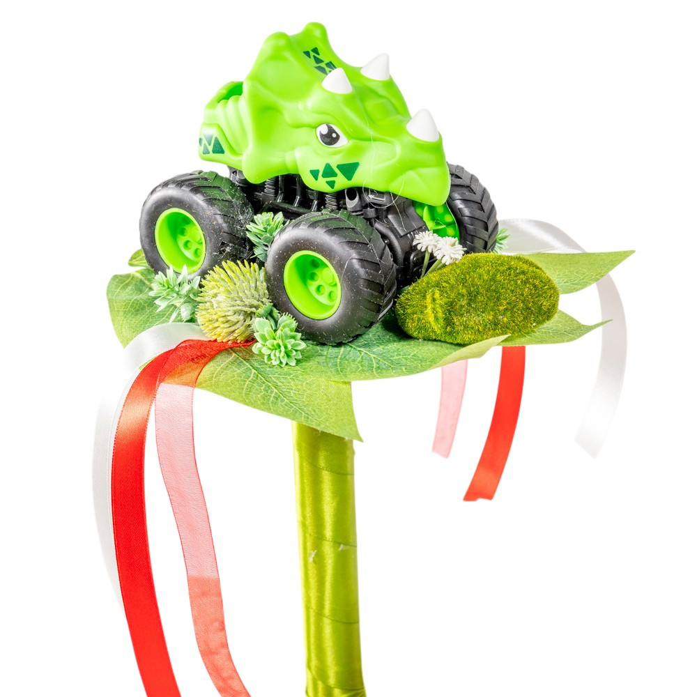 Ballagási csokor dínó kocsival, mohakővel 30cm