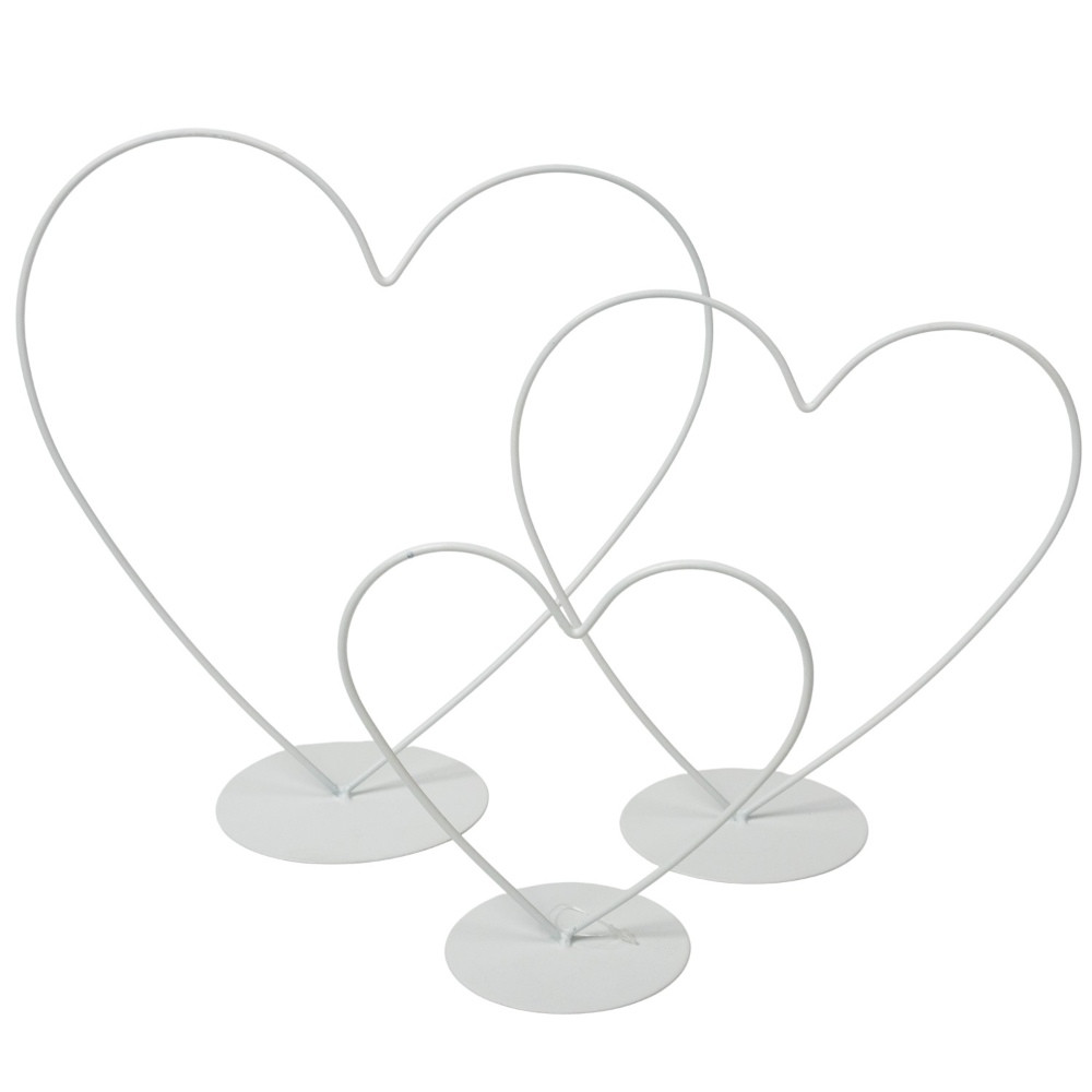 Fém szív talpas szett fehér M24-20-15cm 3db-os