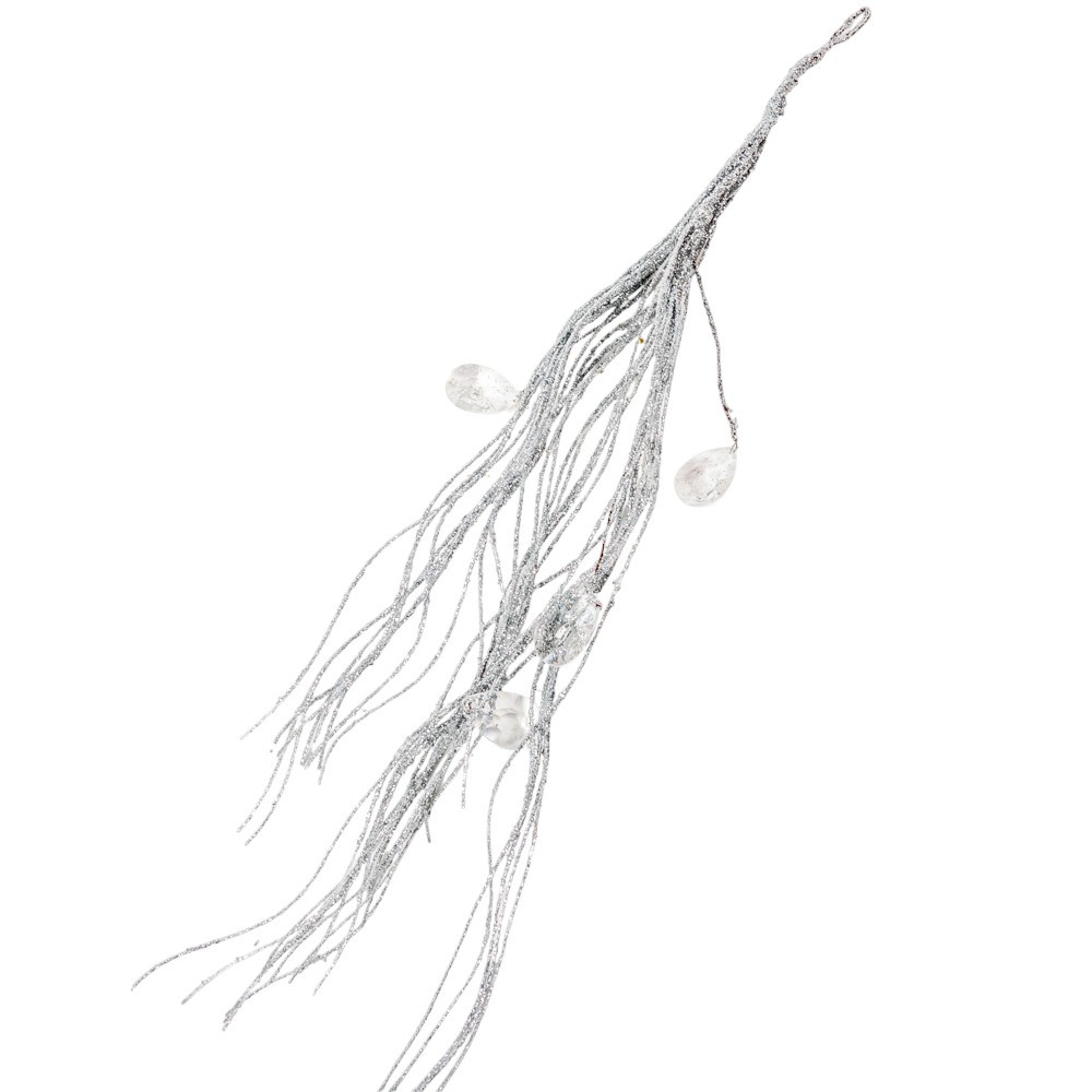 Glitteres dekor ág sztrasszal ezüst 44cm
