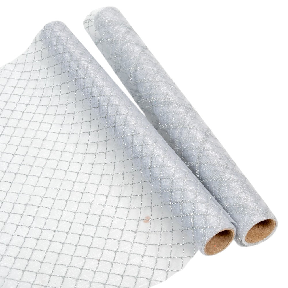Glitteres organza dekor anyag ezüst 36,5x200cm