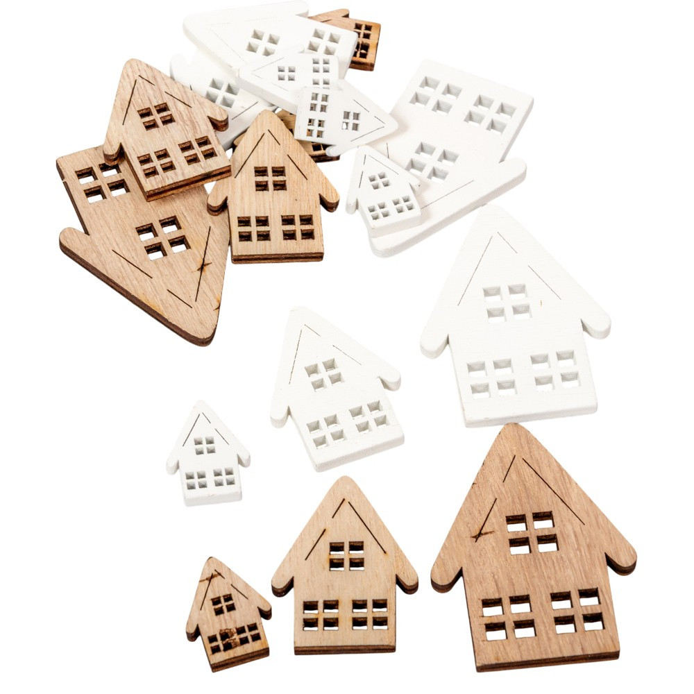 Házikó fa 3-5-7cm natúr-szürke-fehér 18db-os