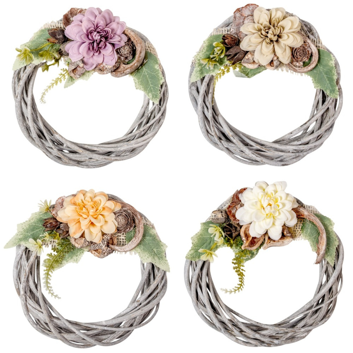 Vessző koszorú selyem dália díszítéssel 20cm