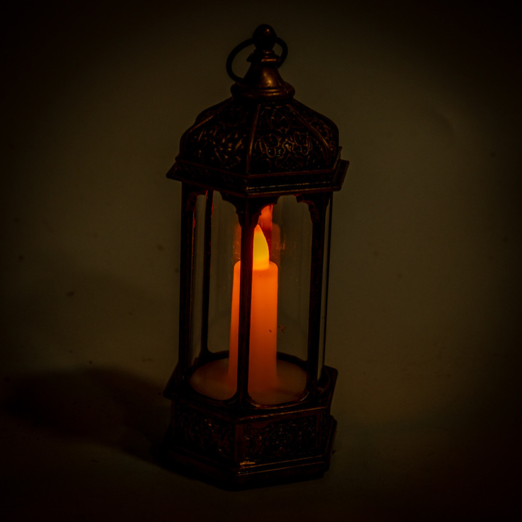 Lámpás LED-es gyertyával rusztikus 15x6cm