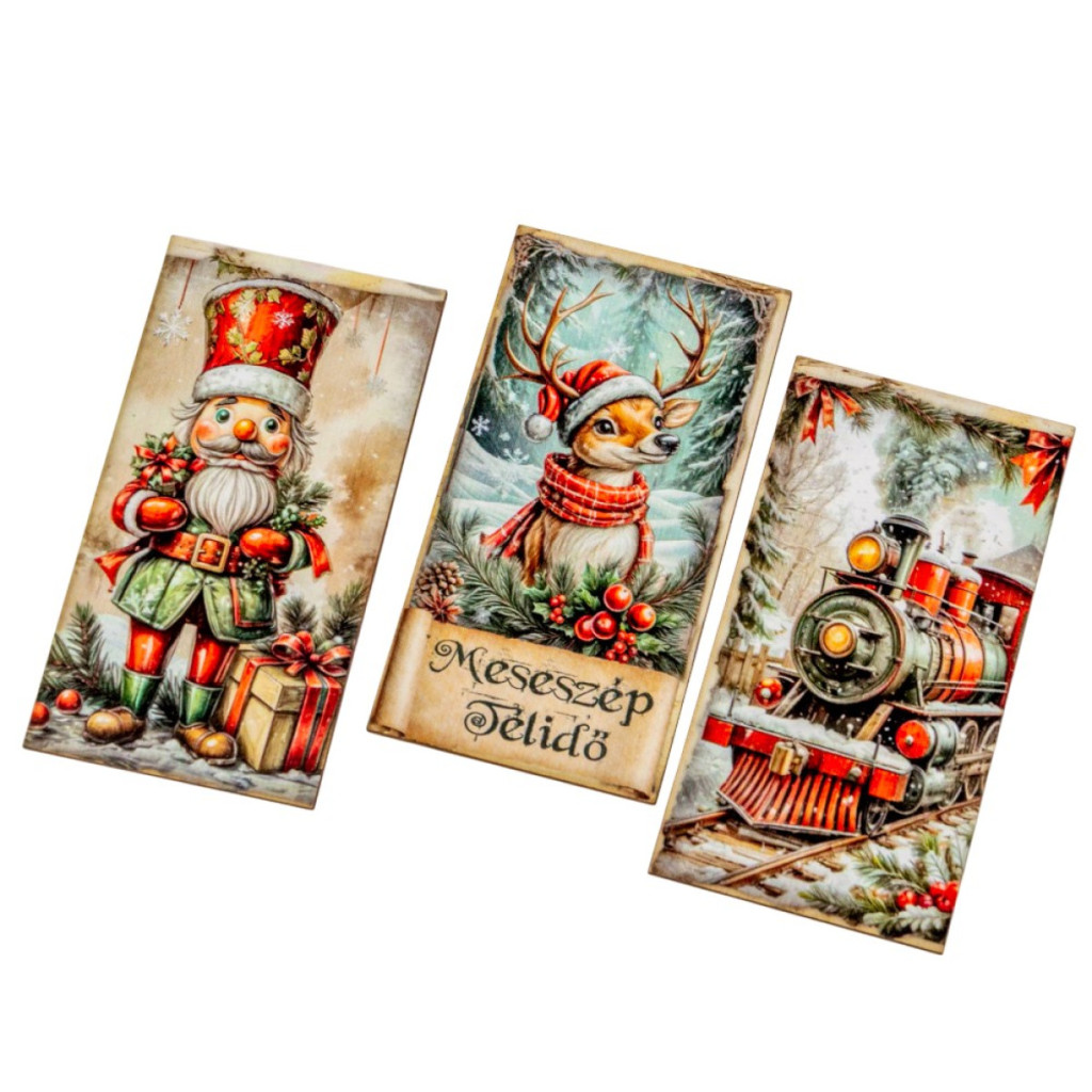 Nyomtatott dekorkarton Karácsonyi piros-zöld téma tábla 9,5cm 3db-os