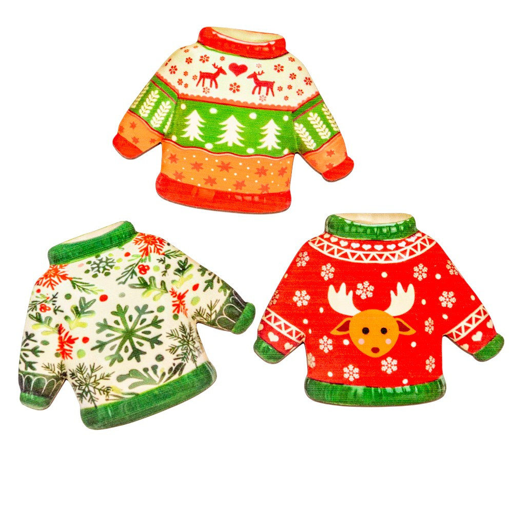 Nyomtatott dekorkarton Karácsonyi pulcsi 7cm 3db-os