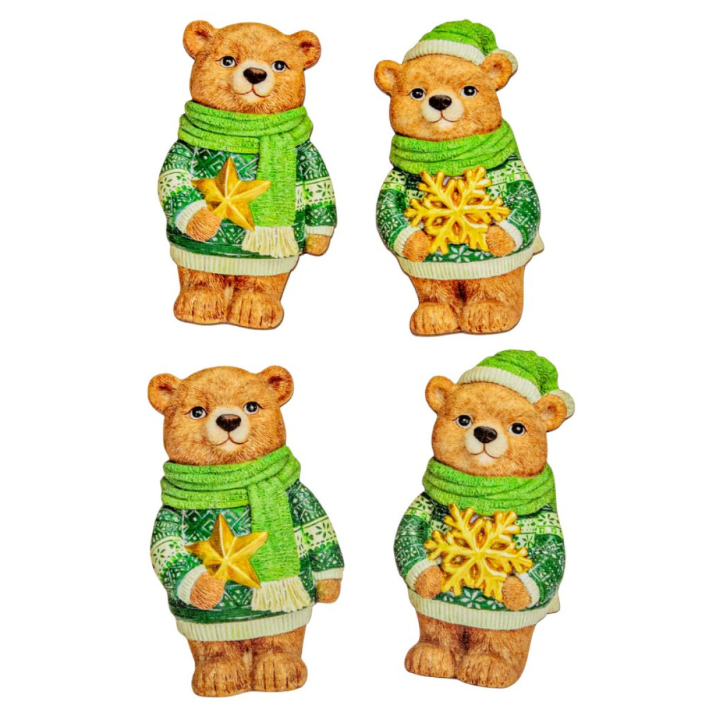 Nyomtatott dekorkarton Karácsonyi zöld maci 8cm 4db-os