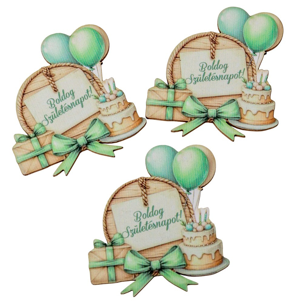 Nyomtatott dekorkarton Lufis torta szülinap 7cm 3db-os