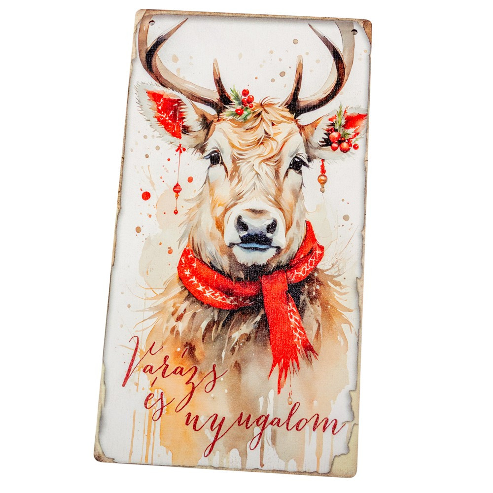 Nyomtatott fa tábla Piros karácsonyi téma - Szarvas 13x24,3cm