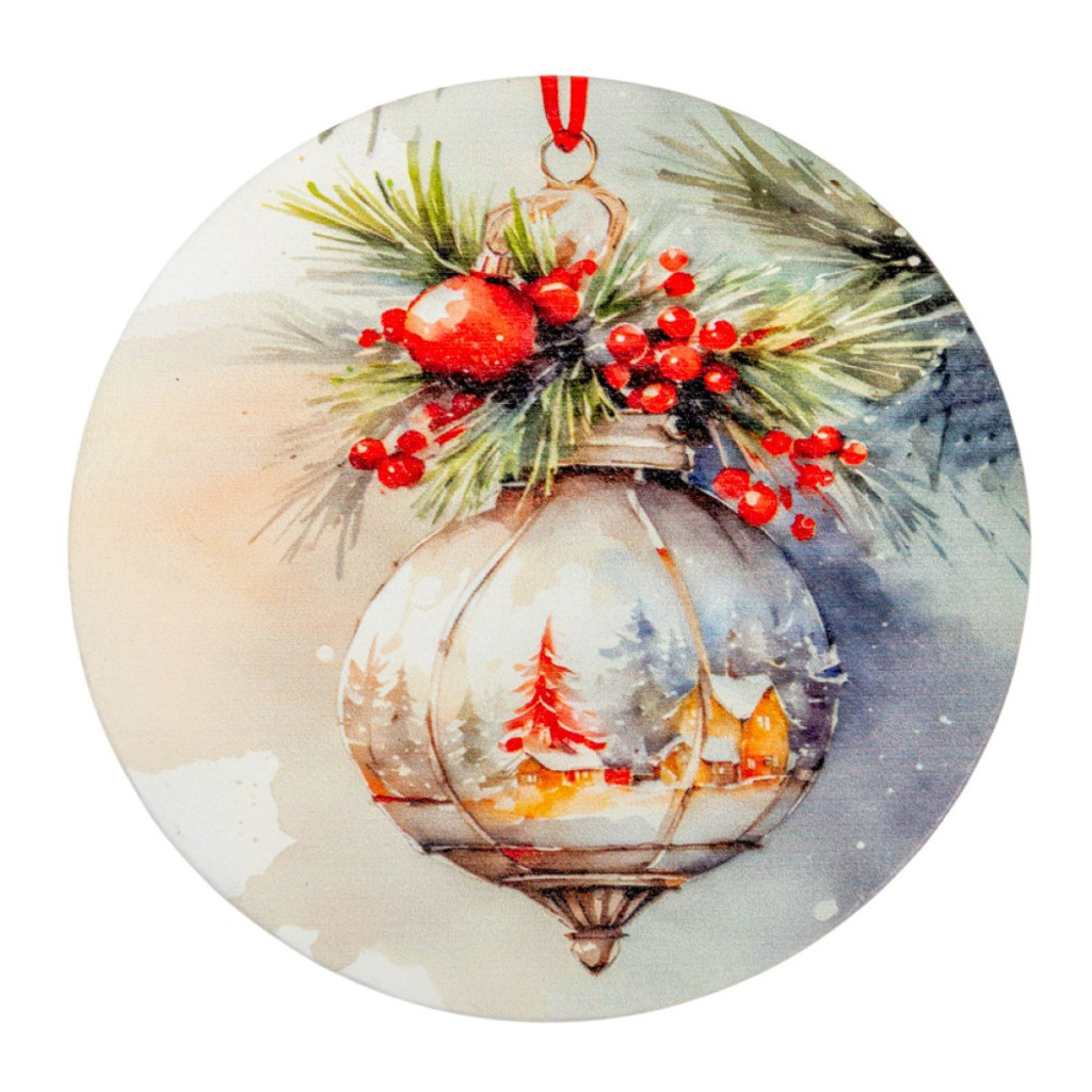 Nyomtatott fa tábla koszorú közép - Karácsonyi piros téma 11,8cm
