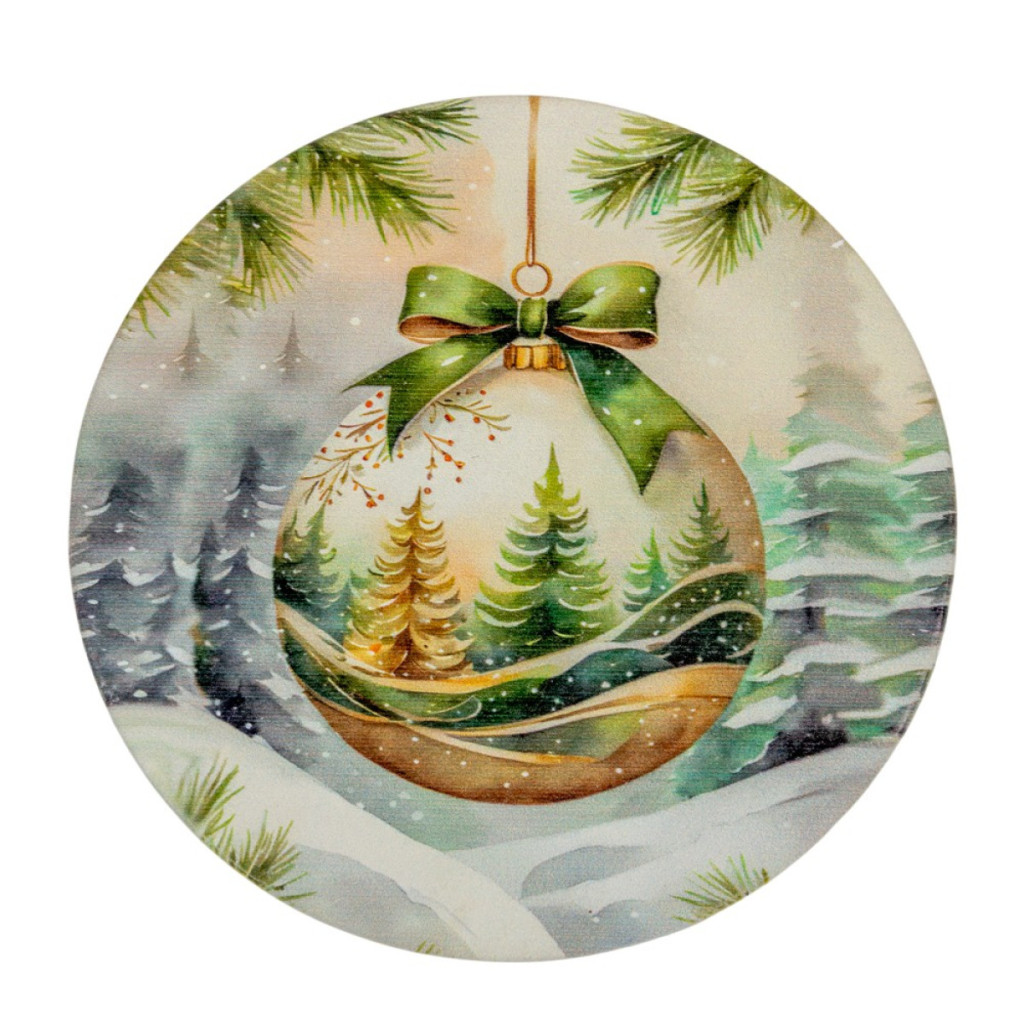 Nyomtatott fa tábla koszorú közép Kar.zöld téma 11,8cm