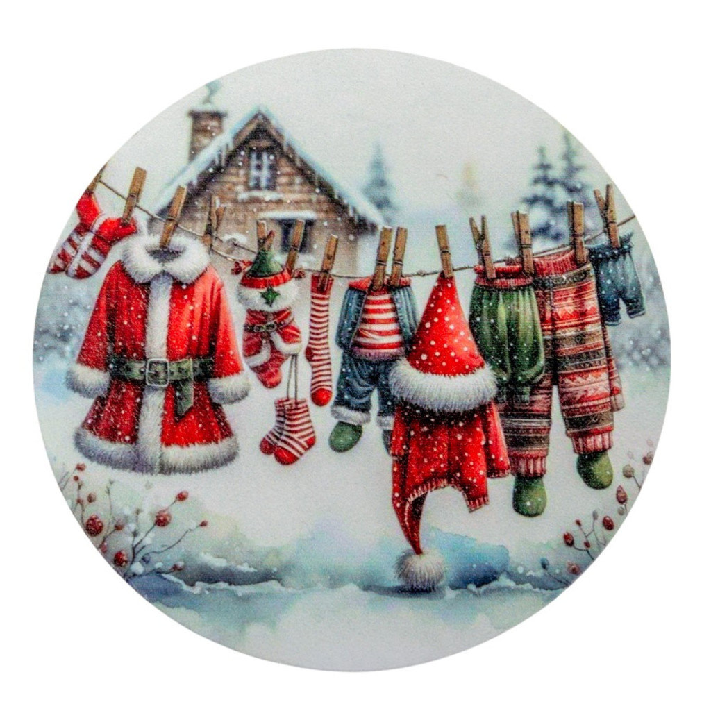 Nyomtatott fa tábla koszorú közép Télapó ruhái 14,8cm