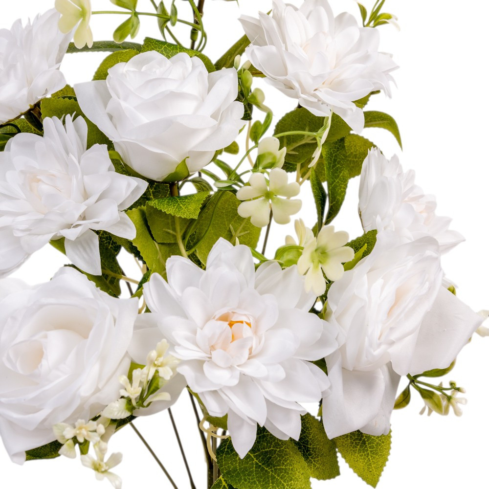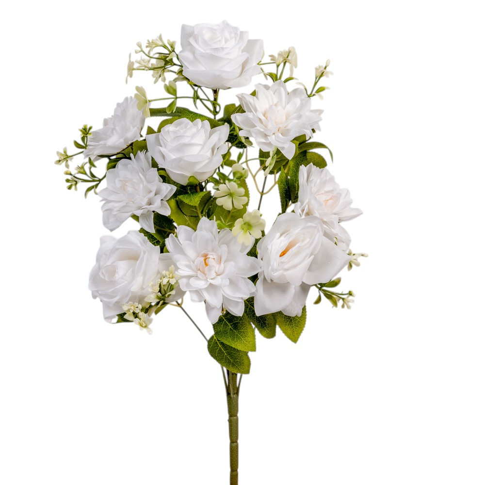 Rózsa/dália csokor féloldalas 9v. fehér,krém M50cm 24db/#