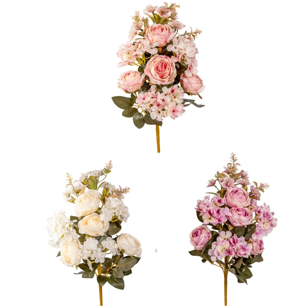 Rózsa,hortenzia csokor féloldalas 10v. mix M45cm 12db/#