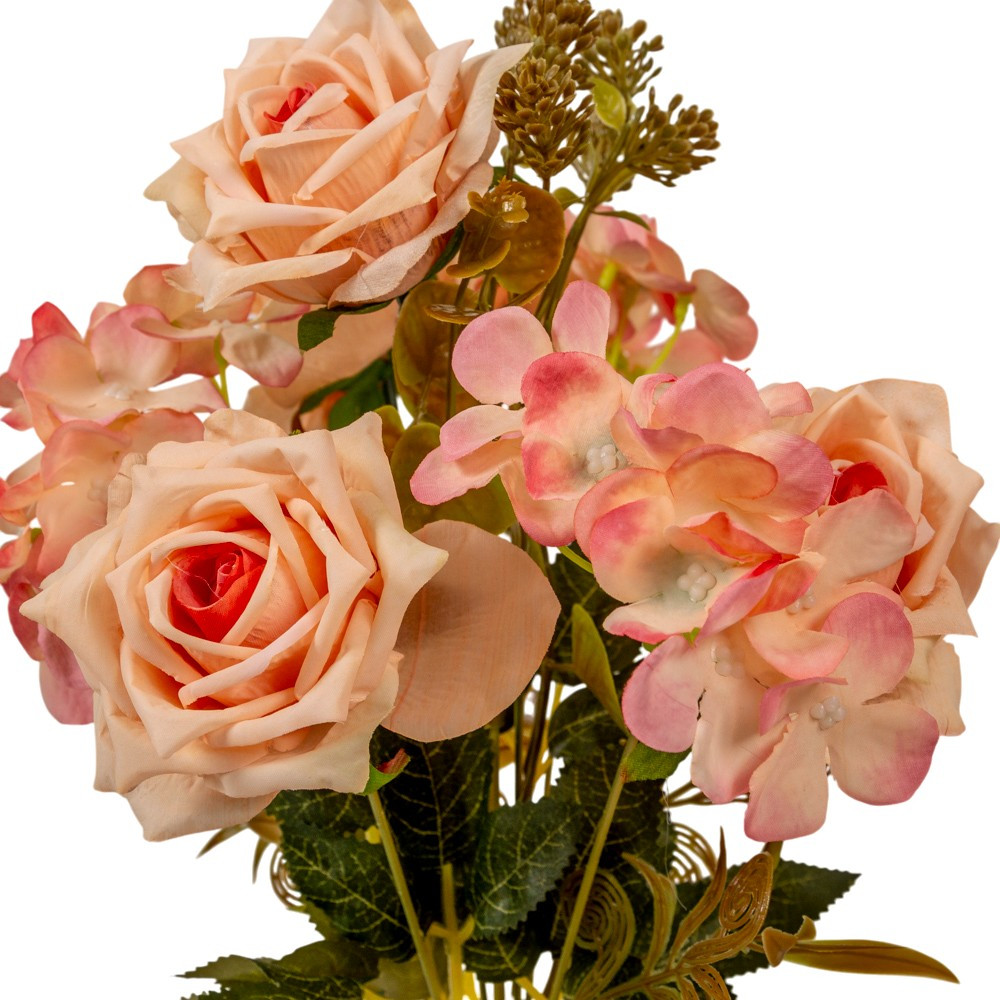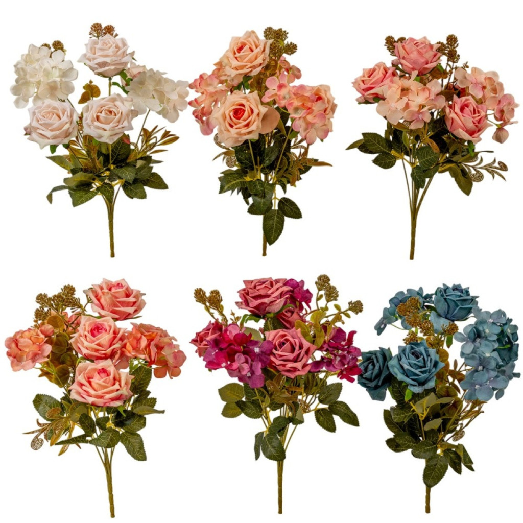 Rózsa, hortenzia csokor 7v. M41cm 24db/#