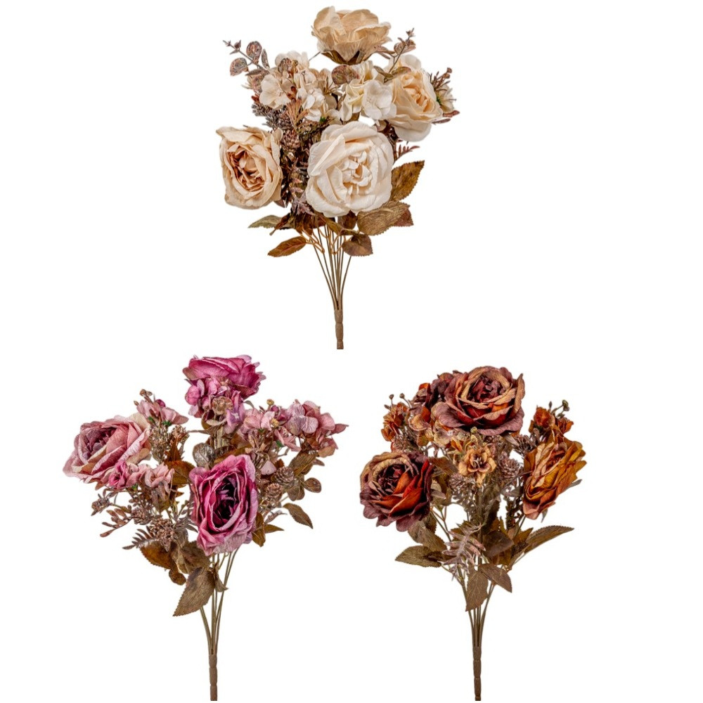 Rózsa, hortenzia csokor 9v. M50cm 12db/#