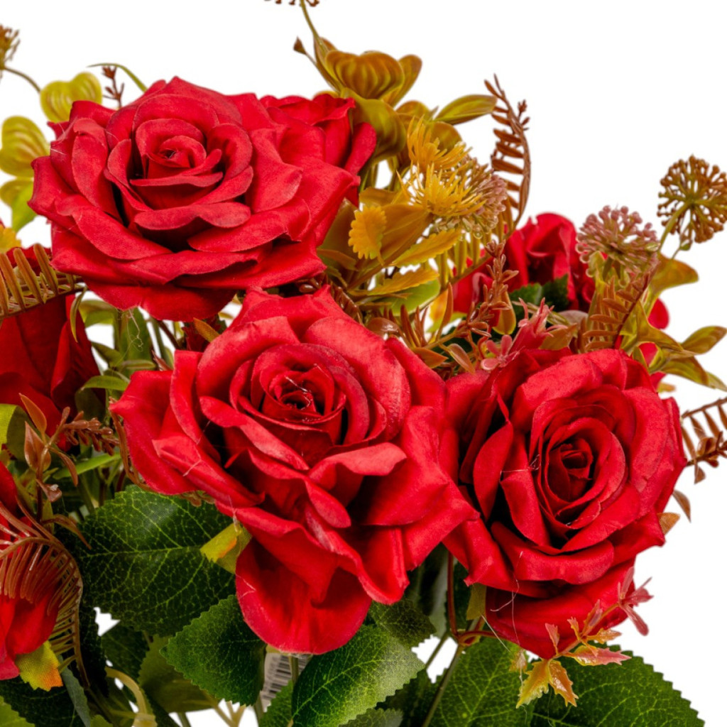 Rózsa csokor 9v. vörös M45cm 12ágú 24db/#