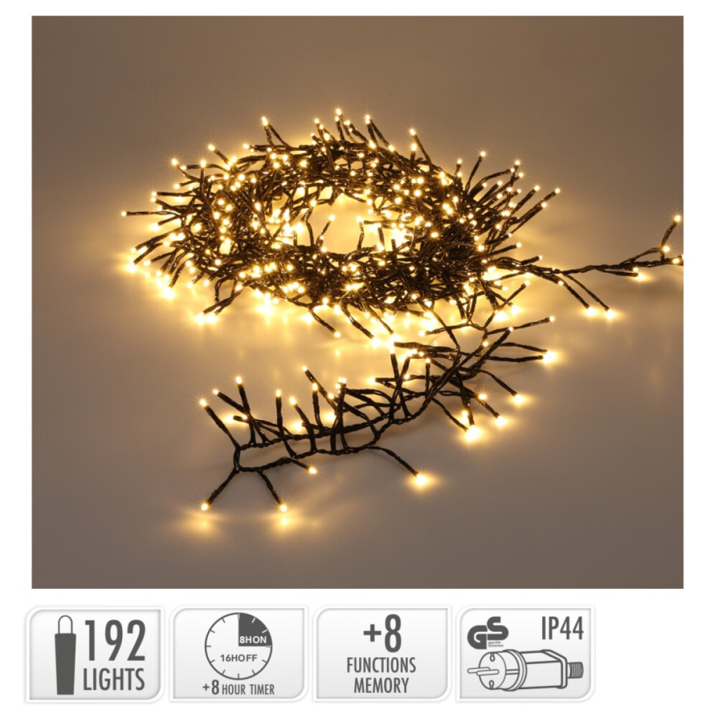 Sűrű fényfüzér 192 LED-es időzítős programos adapteres meleg 2,4m