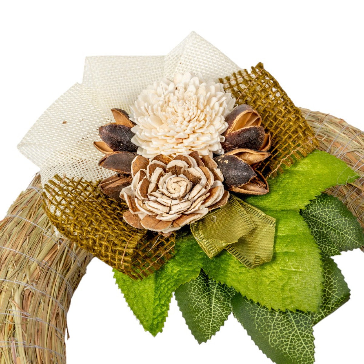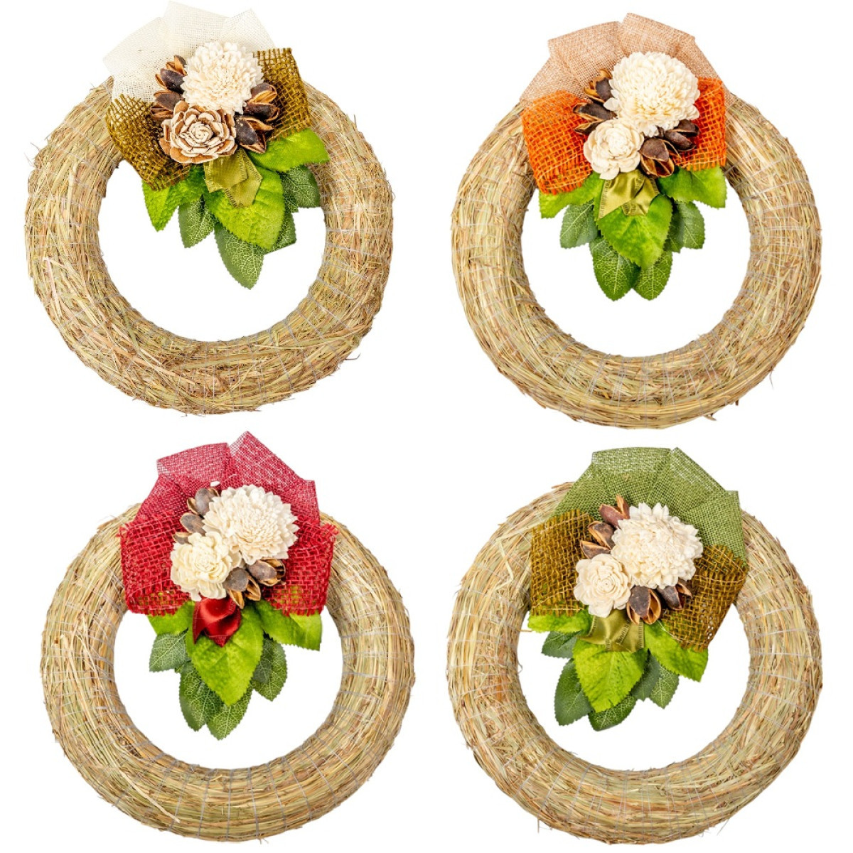 Szalma koszorú hazai szárazvirág díszítéssel 25cm