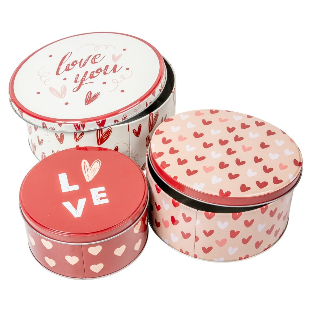 Szív mintás fém doboz szett D20-17-14cm 3db-os