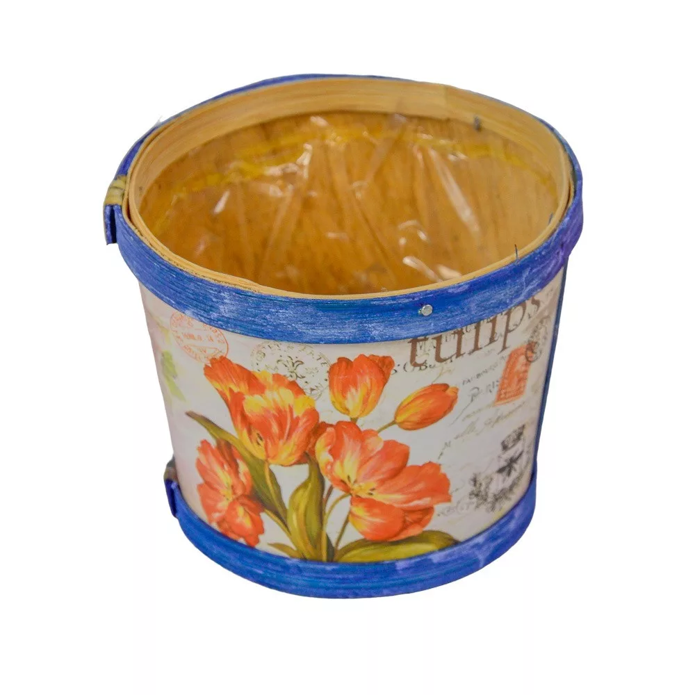 Tulipán mintás fa kaspó bélelt D10x8cm