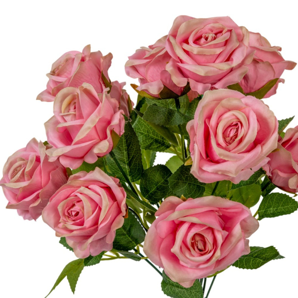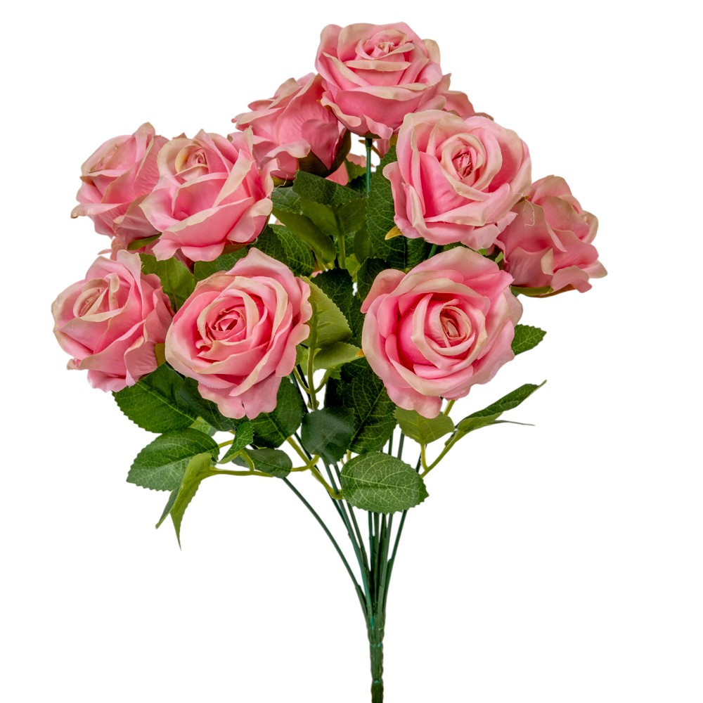 Rózsa csokor 12v. rózsaszín-zöld M37cm 30db/#