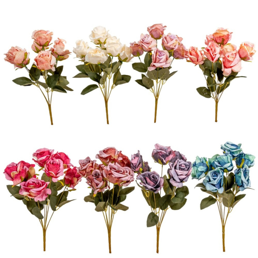 Rózsa csokor antikolt 7v. mix M43cm 48db/#