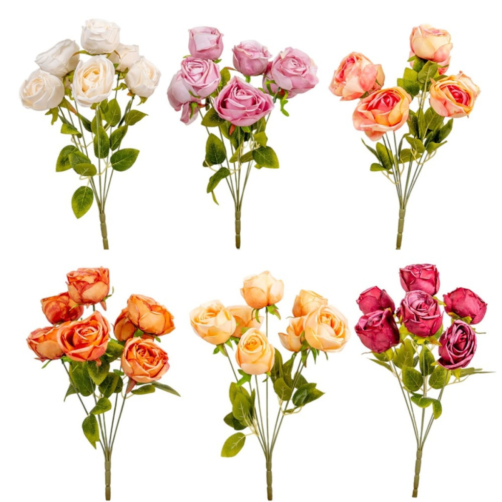 Rózsa csokor antikolt 7v. mix M42cm 72db/#