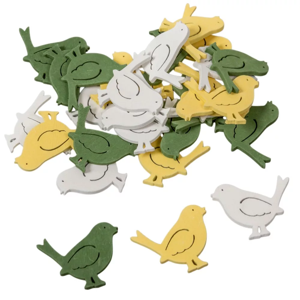 Madárka fa 4cm fehér-zöld-sárga 30db-os