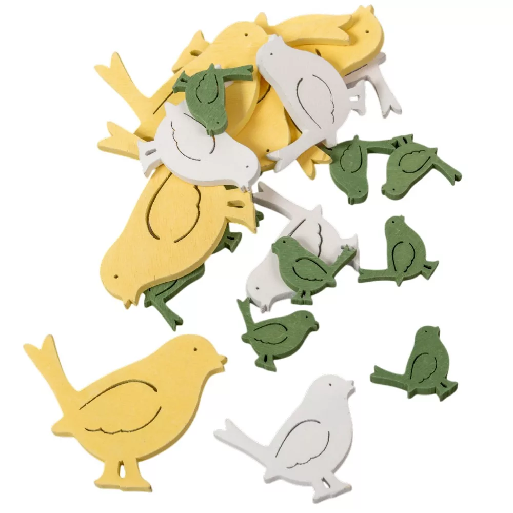 Madárka fa fehér-sárga-zöld 7-5-3cm 20db-os