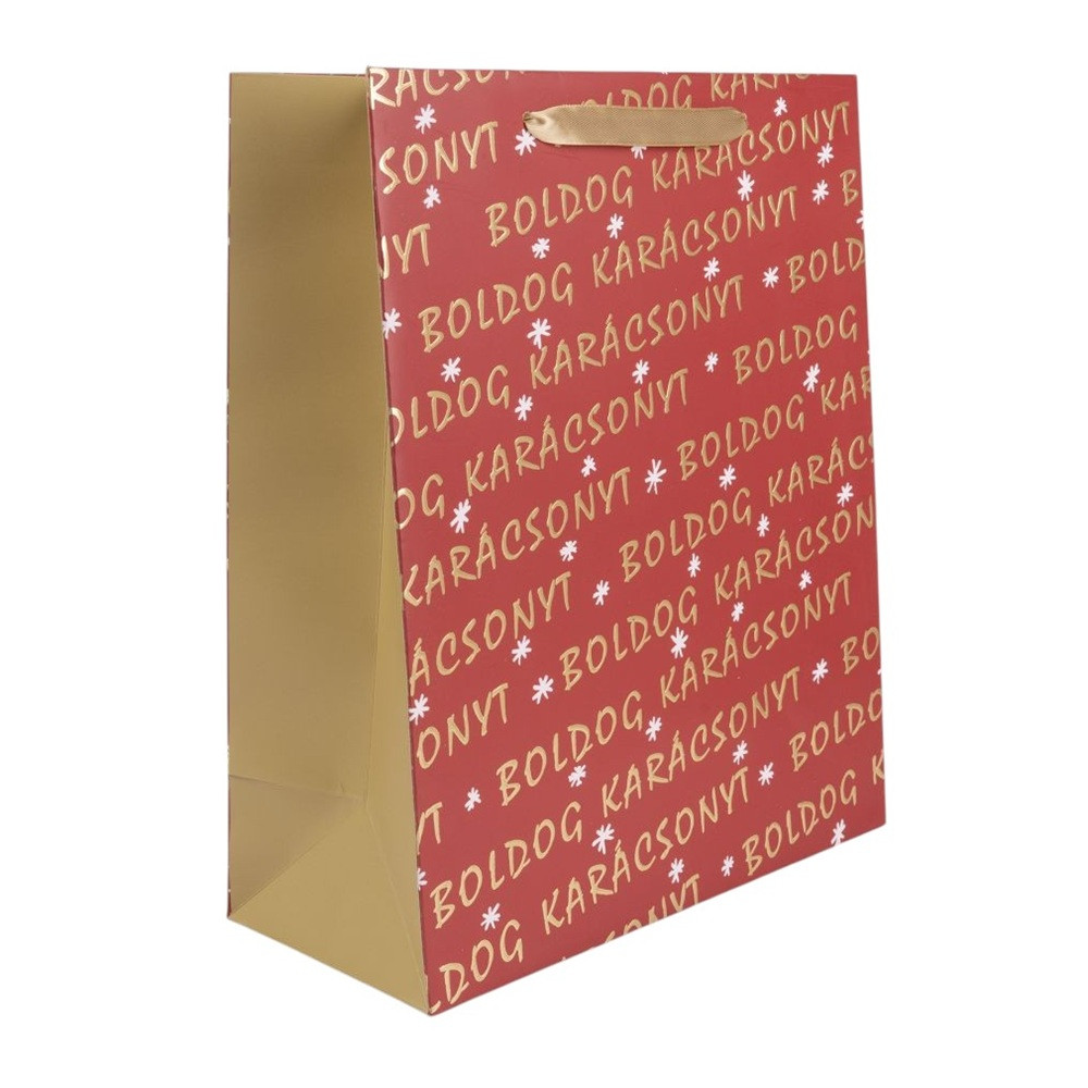 Ajándéktasak arany boldog karácsony felirat 26x32cm