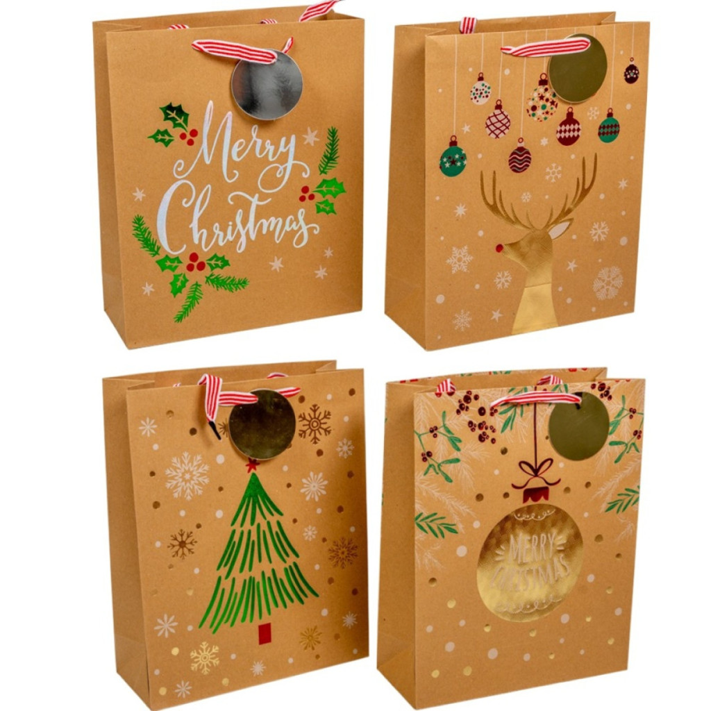 Ajándék tasak kari mintával kraft 32x26cm