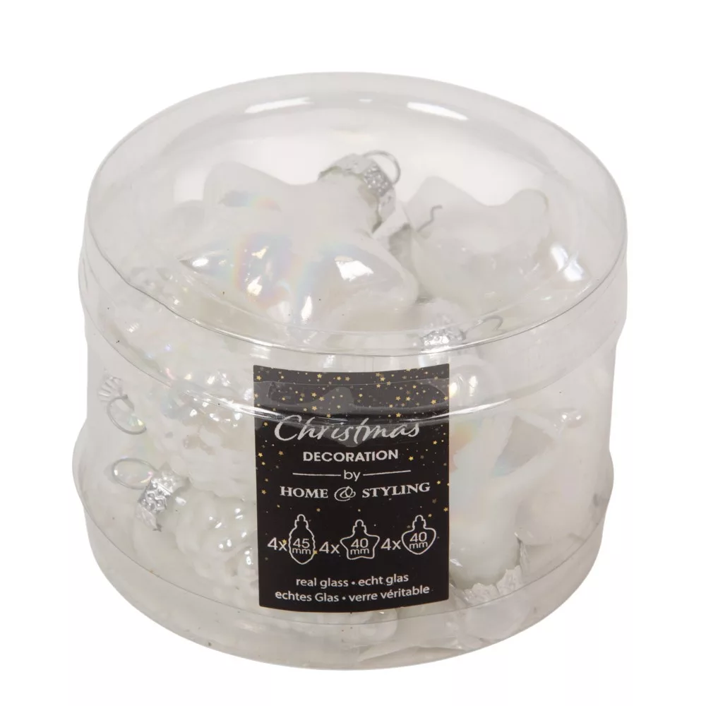 Üvegdísz akasztós fehér 4-7cm 12db-os