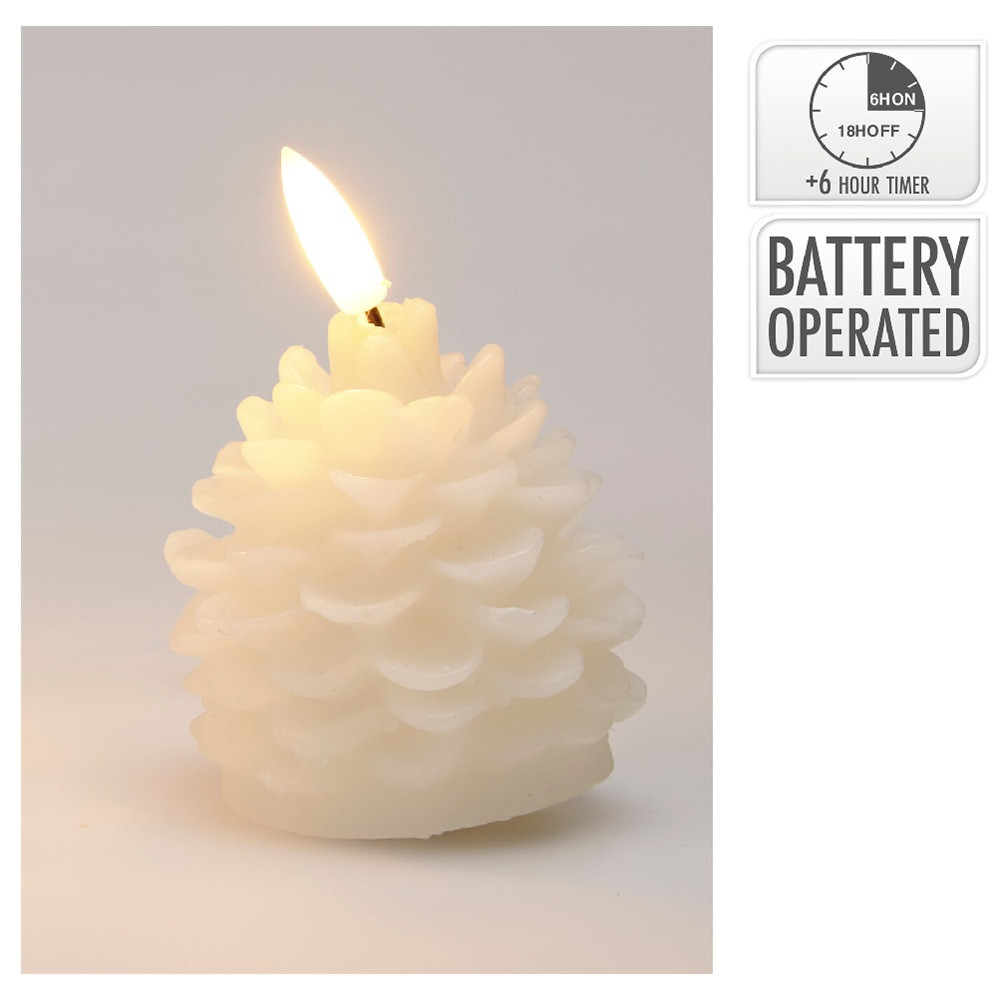 Toboz gyertya LED-es időzítő elemes fehér M7cm