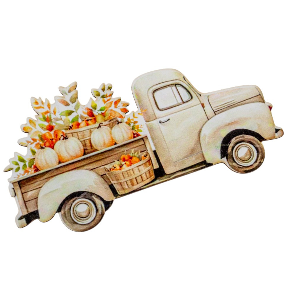 Nyomtatott dekorkarton Őszi teherautó 14,5cm
