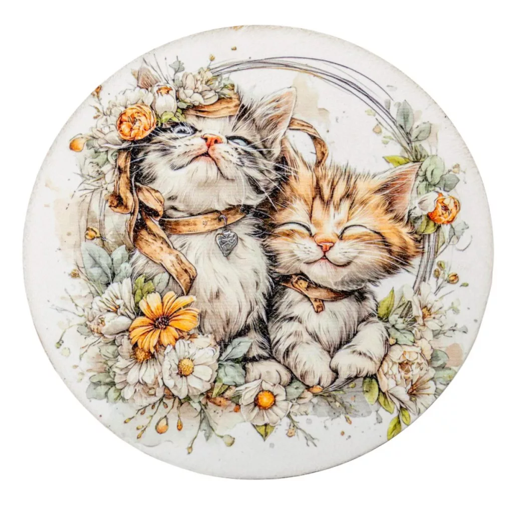 Nyomtatott fa tábla koszorú közép - 2 cicás 14,8cm