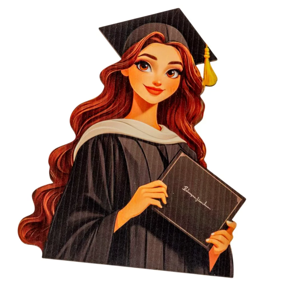 Nyomtatott dekorkarton Beszúrható ballagási dekor lány barna 15cm
