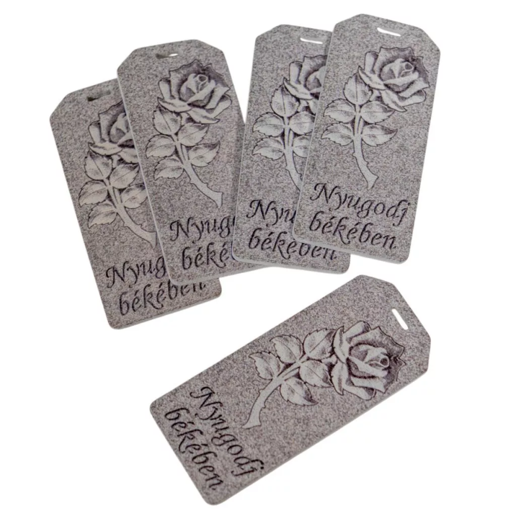Nyomtatott fa Nyugodj békében biléta 6cm 5db-os