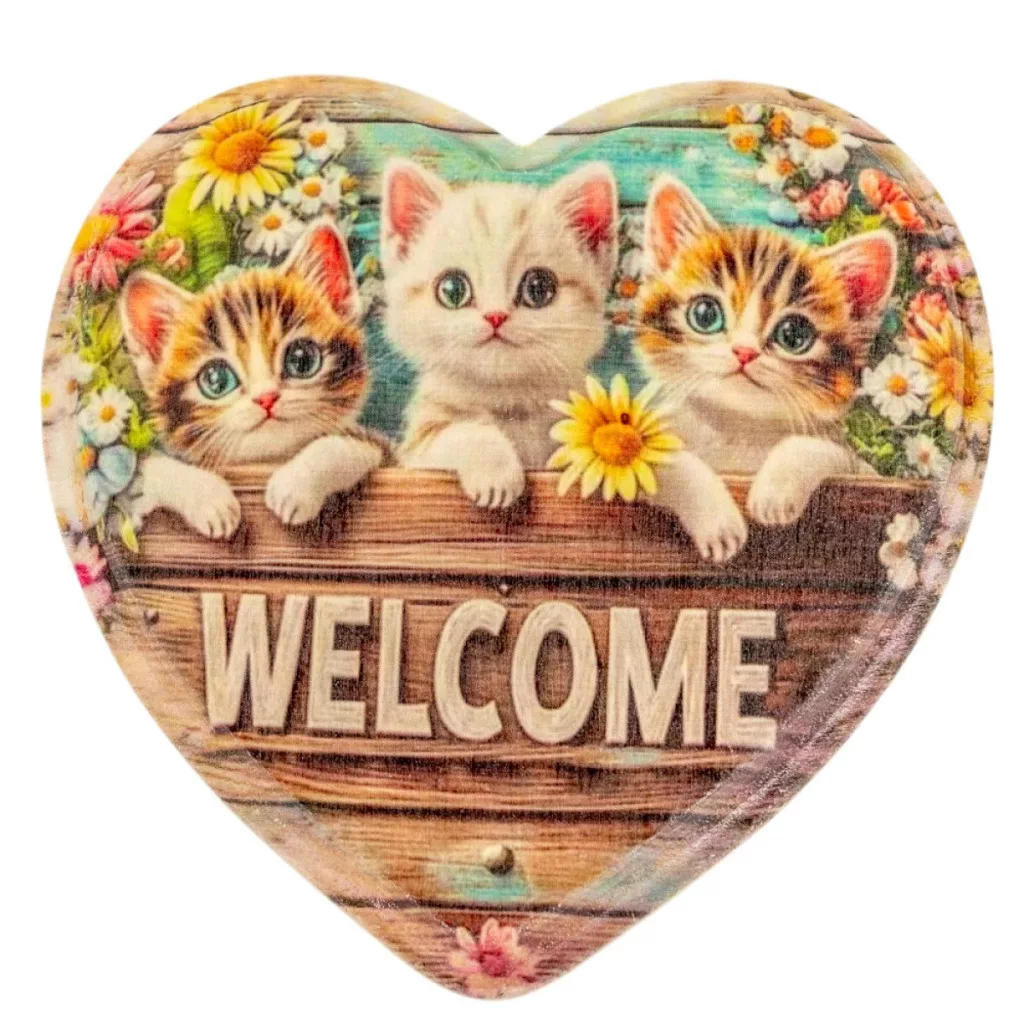 Nyomtatott fa tábla szív peremes cicás 15cm