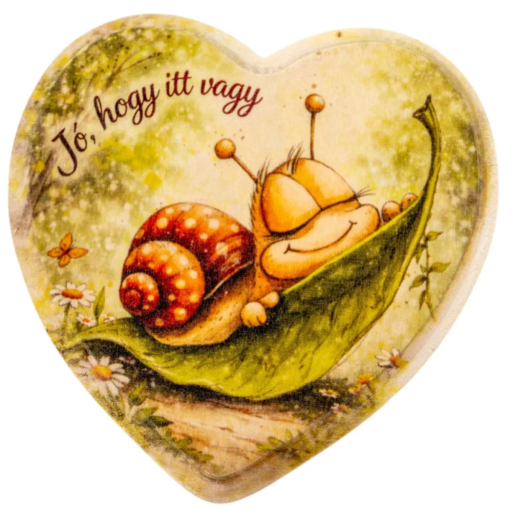 Nyomtatott natúr fa szív peremes csigás 15cm