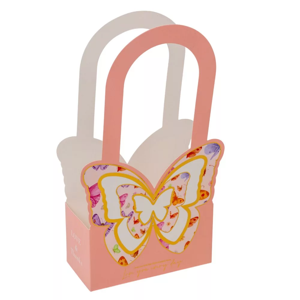 Papírtáska pillangós rózsaszín 18x9x36,6cm