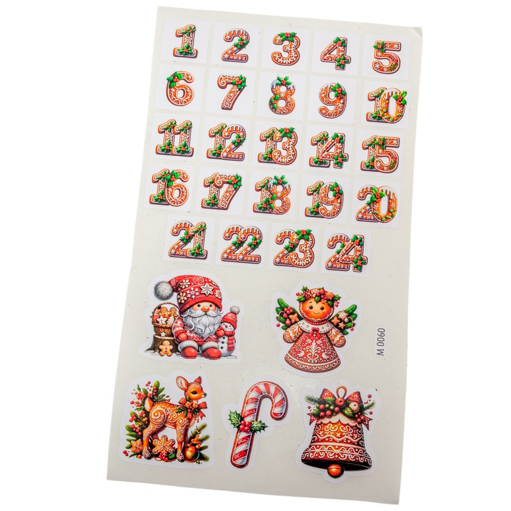 Matrica mézi adventi készülődés - fehér alap 2,5-5cm 29db/lap