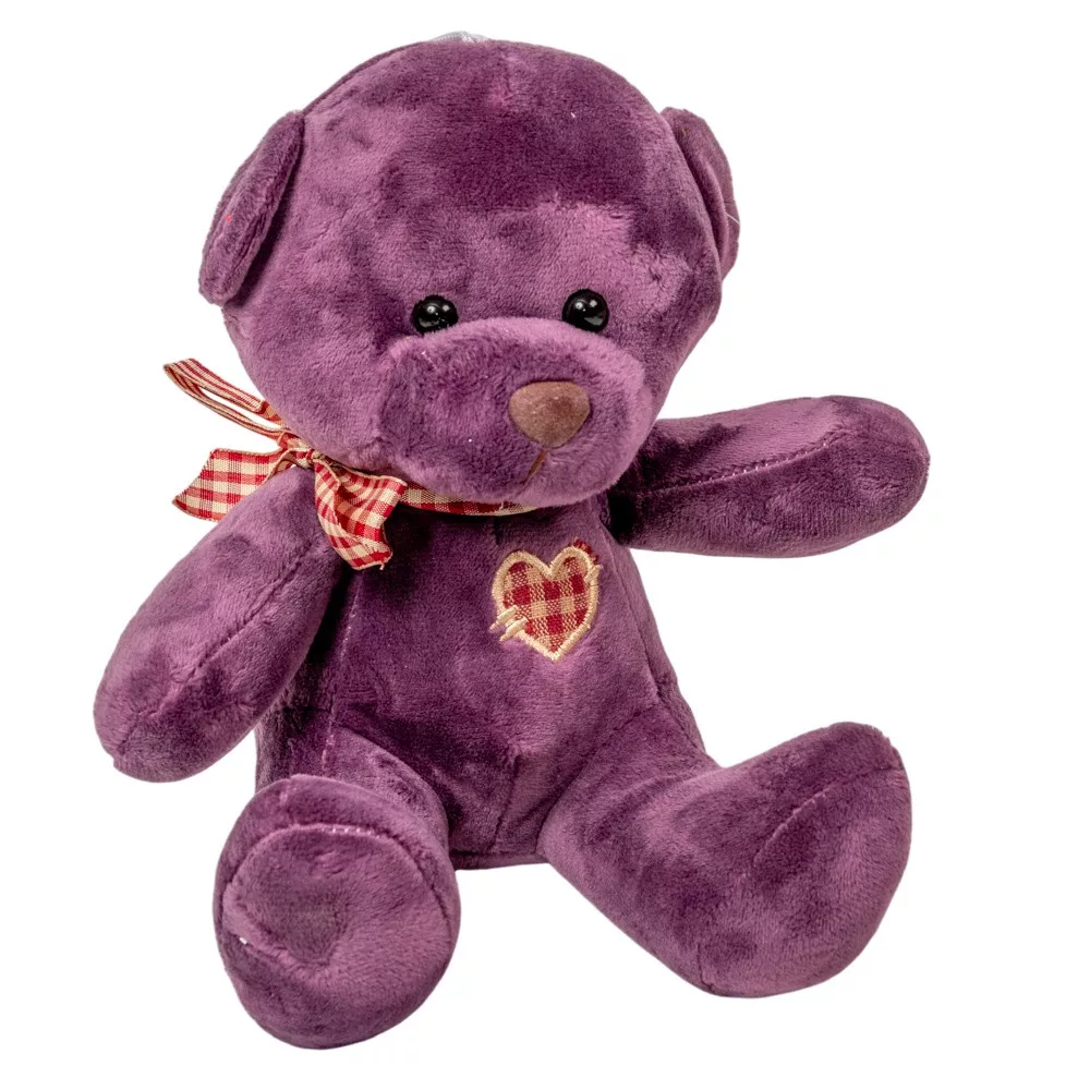 Plüss maci szívvel lila 20cm