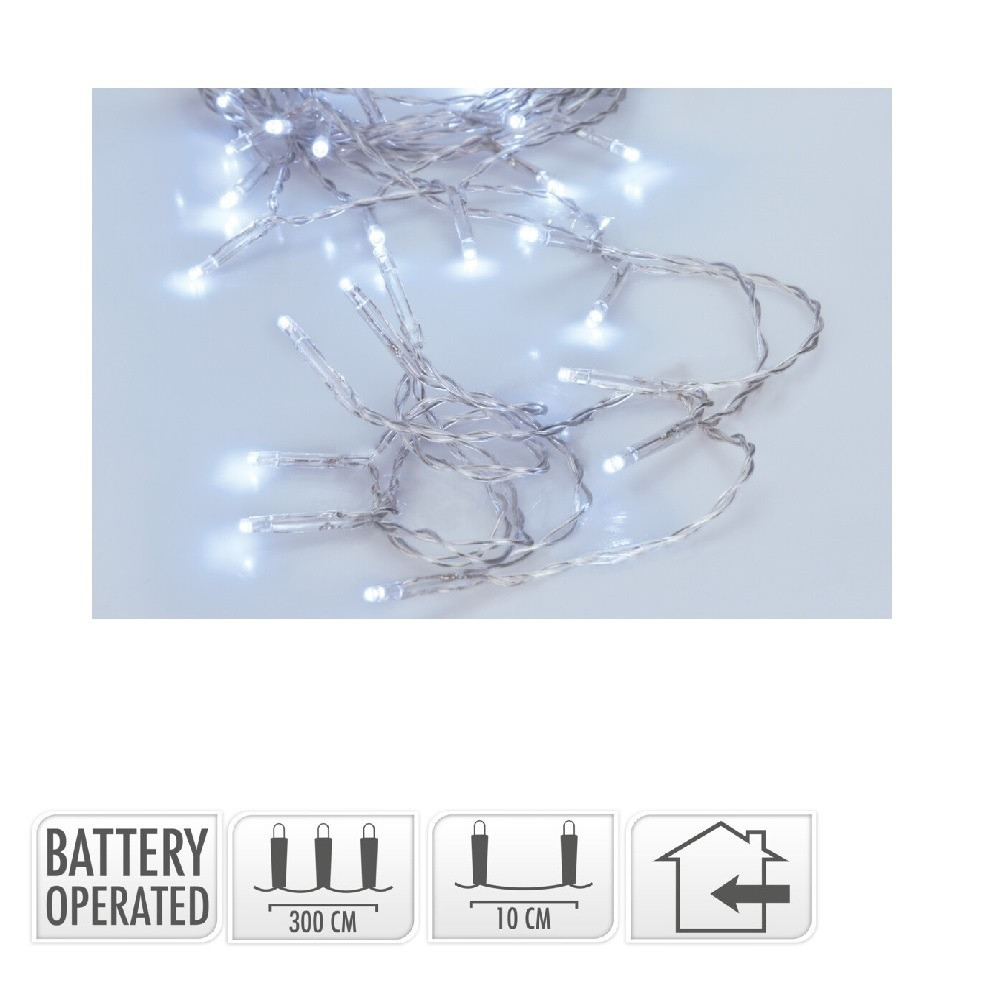 Fényfüzér 30 LED-es transparens elemes (elem nélkül) hideg 300cm