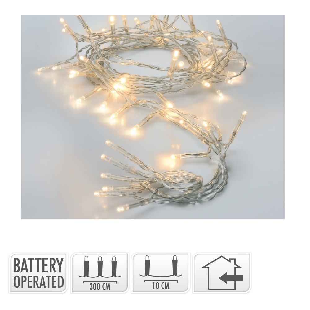 Fényfüzér 30 LED-es transparens elemes (elem nélkül) meleg 300cm