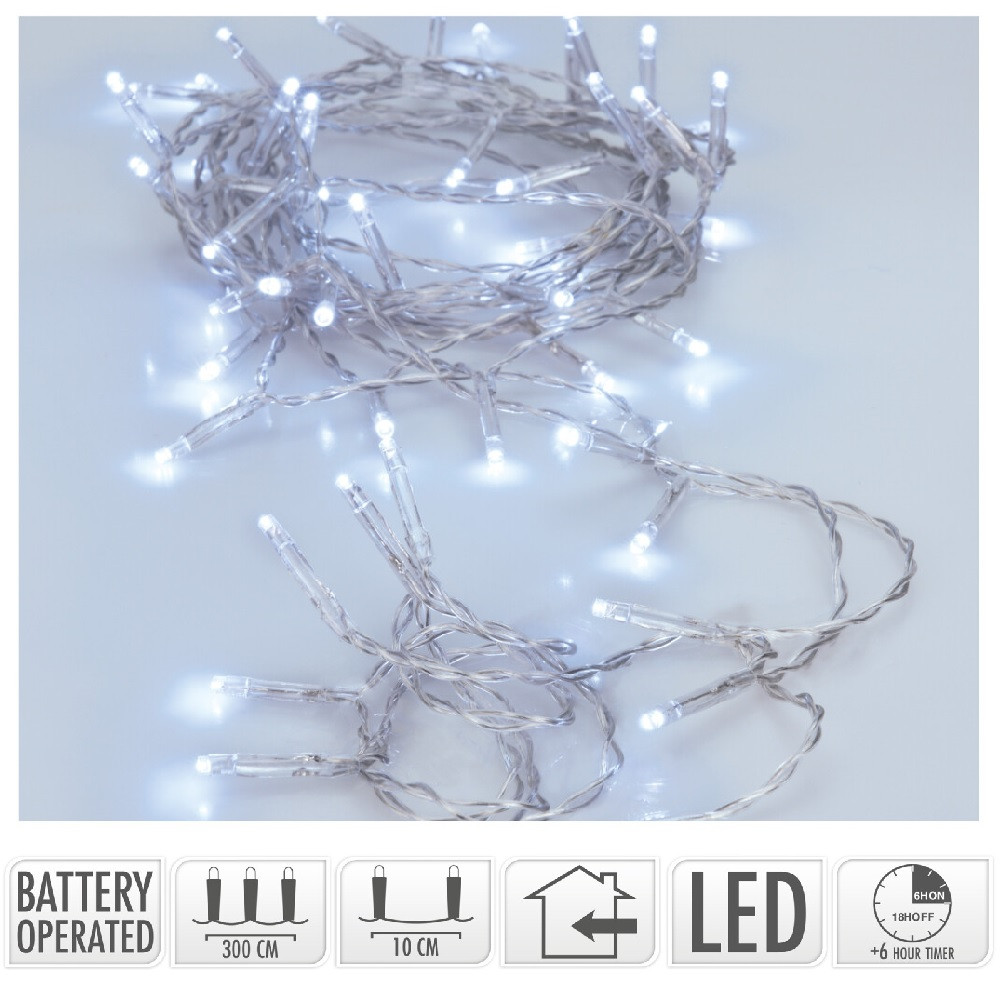 Fényfüzér 30 LED-es transparens időzítős elemes (elem nélkül) hideg 300cm