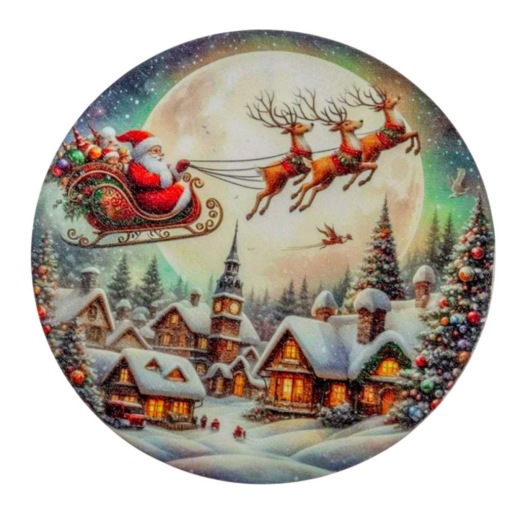 Nyomtatott fa tábla koszorú közép Télapó a város felett 14,8cm