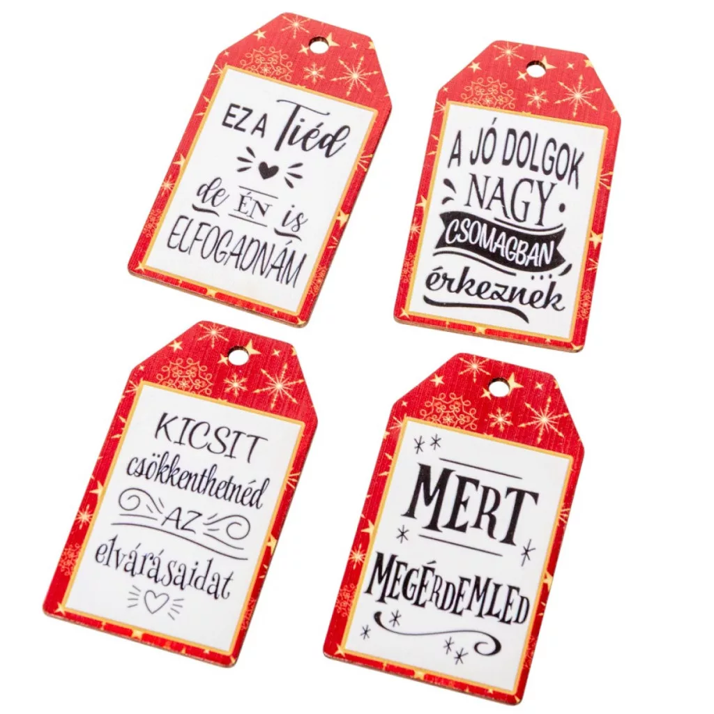 Nyomtatott dekorkarton - Ajándék kísérő tábak humoros 7cm 4db-os