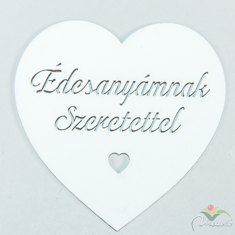 Fa szív Édesanyámnak szeretettel felirattal fehér 10cm